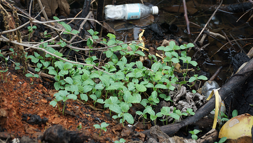 During our visit today, we observed young vegetables and greens which are now shooting up from the ground. The siblings explained that they planted the items in order to have something to cook.