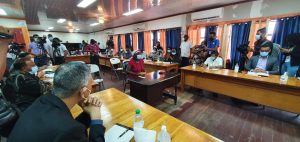 Access to electricity and pension woes at the National Insurance Scheme were among some of the early issues residents of Region Six were able to get addressed when they met with President Irfaan Ali on Friday morning. More than 100 persons gathered at the Regional Democratic Officer at Vryman’s Irving to meet with the Head of State as part of a presidential outreach. One elderly woman took her complaint about the lack of electricity, “I write Housing (Ministry) and everything, the house is not in a squatting area,” she appealed. Another resident, this time a man told the President that he has been “running” to the National Insurance Scheme since 2014 to get his brother’s pension. It was based on the intervention of the President that he was told that the pension can be uplifted next Friday.