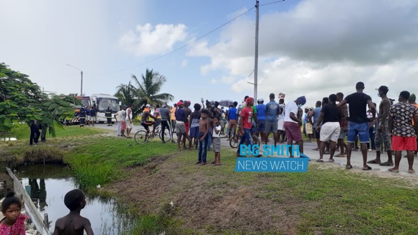 The burning of debris has erupted in the community of Dartmouth on the Essequibo Coast as a direct reaction of the Police Force’s SWAT Unit’s killing of 29 Year old Businessman Orin Boston.