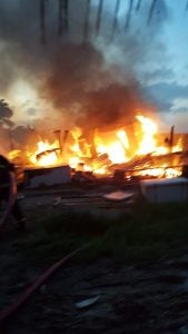 This afternoon, a fire of so far unknown origin which started at a shack along a dam at Ogle, East Coast Demerara saw the destruction of three other shacks, rendering a number of squatters homeless. The fire also threatened a three storied building which is located next to the squatting area.