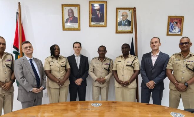 The Guyana Police Force (GPF) and French authorities have taken significant steps toward strengthening bilateral security collaboration following a high-level meeting on Tuesday between Commissioner of Police Clifton Hicken, senior GPF officers, and a French delegation led by Olivier Plançon, Ambassador of France in Guyana.