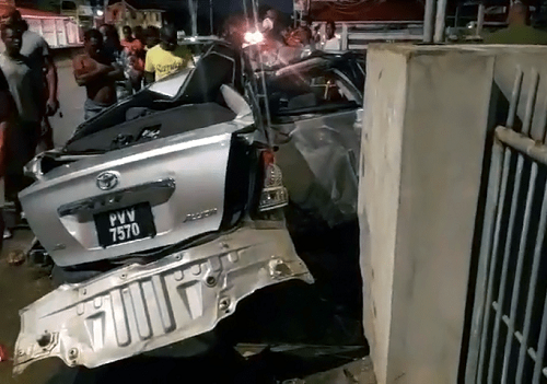 It was while returning home on Sunday evening that the driver of the motor car PVV 7570 in which Marcus and his Friend Courtney were traveling struck a median, lost control, and slammed into a concrete fence at Bagotstown.