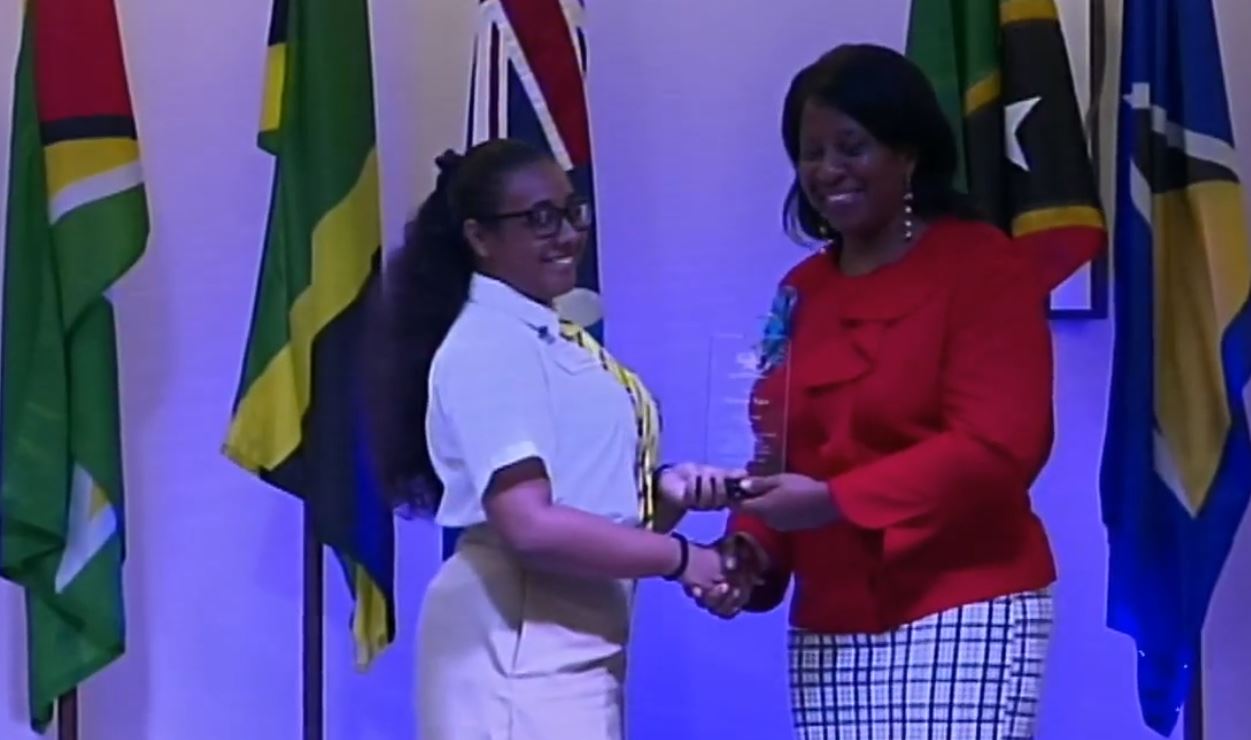 CSEC Top Awardee: Guyanese Riana Toney addressing the Grenadian audience Thursday evening.