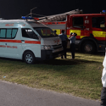 First responders from the Fire Service as well as a Guyana Police Force Traffic Officer shares in the moment