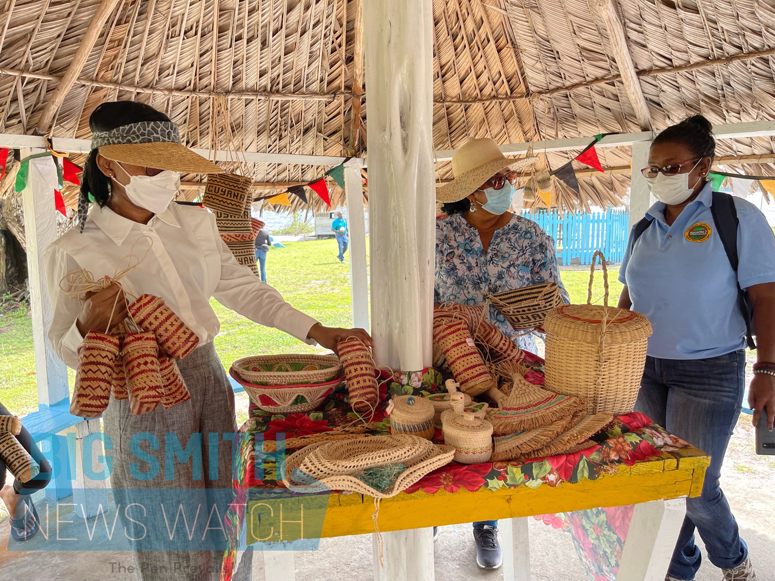 Tourism Minister Walrond is captivated by craft products on sale in the community of Capoey Region 2 Essequibo