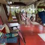 A reading area for guests ar t Adel’s Resort in the Pomeroon River. This experience is complemented by continuous singing of birds swaying of trees with the wind