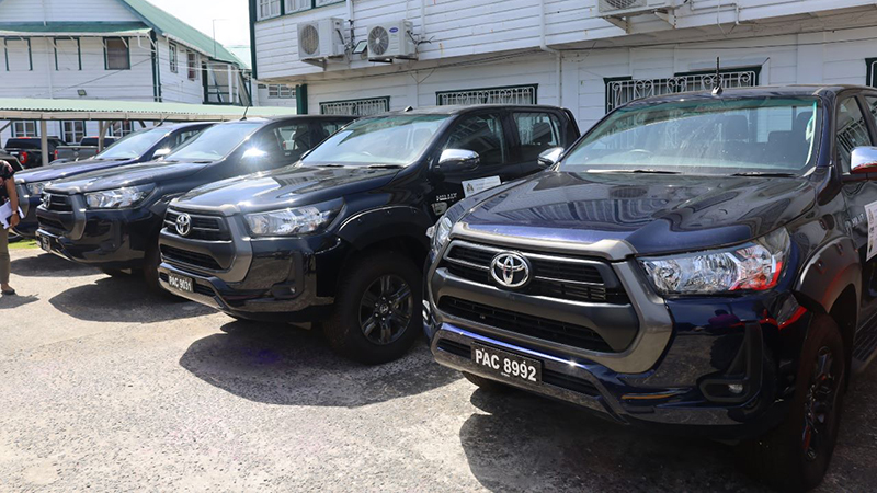 The items were handed over at the Ministry’s Regent street Office in the presence of the Minister and included six 4×4 pickup vehicles, six all-terrain vehicles, 6 outboard boats and engines, and 24 off-road motorcycles.