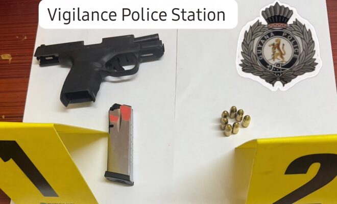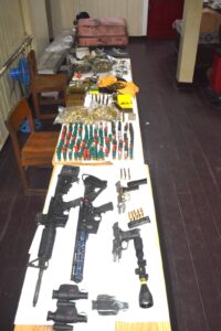 In a successful intelligence-led operation conducted by ranks from the Guyana Police Force’s Criminal Investigation Department Headquarters (CID H/Q) and the Narcotics branch, a significant cache of high-powered firearms, ammunition, and narcotics was discovered in South Ruimveldt, Georgetown.