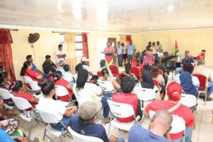 The outreach culminated in a community meeting at the Port Kaituma Community Centre, where residents gathered alongside regional officials to voice concerns, particularly those affecting the mining sector.