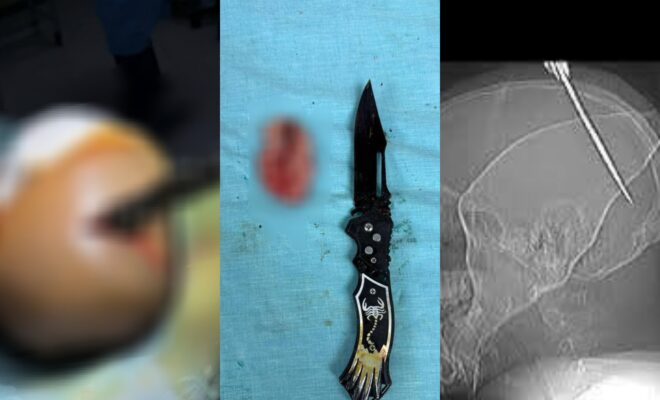 A Cuban national, 19 years old male, was rushed to the hospitalโs emergency room after sustaining a violent stab wound to the head during an altercation at a social gathering. Upon arrival, he presented with a knife deeply embedded in his skullโa rare and highly dangerous form of penetrating brain injury. Such cases are exceptionally critical, as any movement of the object can result in catastrophic bleeding, irreversible brain damage, and death.