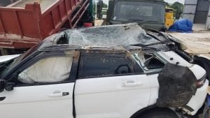 The wrecked vehicle after the crash