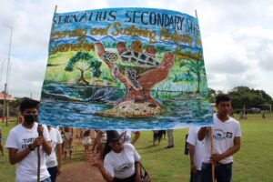 The event kicked start at 8:00h on Saturday with a march into the village by conservation groups accompanied by Non-Governmental Organisations (NGO’S) carrying colourful banners displaying conservation messages. After the march into the village, persons in attendance were given the opportunity to visit several booths set up at the event to learn about ongoing conservation projects and join wildlife clubs. There was also a library where books on animals found within the North Rupununi District were available.