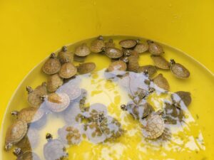 On Saturday over 600 baby turtles that were rescued from flooding earlier this year were released into their natural habitat. The turtles were released at the Annual turtle festival, held in Yupukari Village, North Rupununi. The event returned this year after a two-year hiatus. It is aimed at educating the public on the protection of the remaining turtle population, highlighting conservation issues, providing educational information on dealing with wildlife, and providing vital information on ongoing turtle conservation projects.